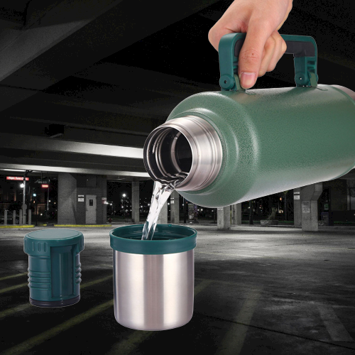 our double-walled Classic 1.3 Liters thermos with stainless steel vacuum insulation is perfect for preserving hot and cold drinks for up to 24 hours (2 days for iced drinks). Made from naturally BPA-free 18/8 stainless steel, this stylish thermos is leak-proof and rust-proof, making it durable and won’t disappoint. The Stanley 1.3 Liters thermos is thin enough to be held with one hand, it has a twist-pour stopper for easier pouring of your drink. The insulated lid can be used as a glass. Other features include a lid that can also be used as a cup.