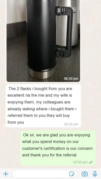 Enjoy a 24 — 48 hour Insulated Vacuum Flask That Can Keep Freshness and the Taste of Your Tea, Water, Coffee, Pap, and Other Beverages, Hot or Cold For 24 to 48 hours.