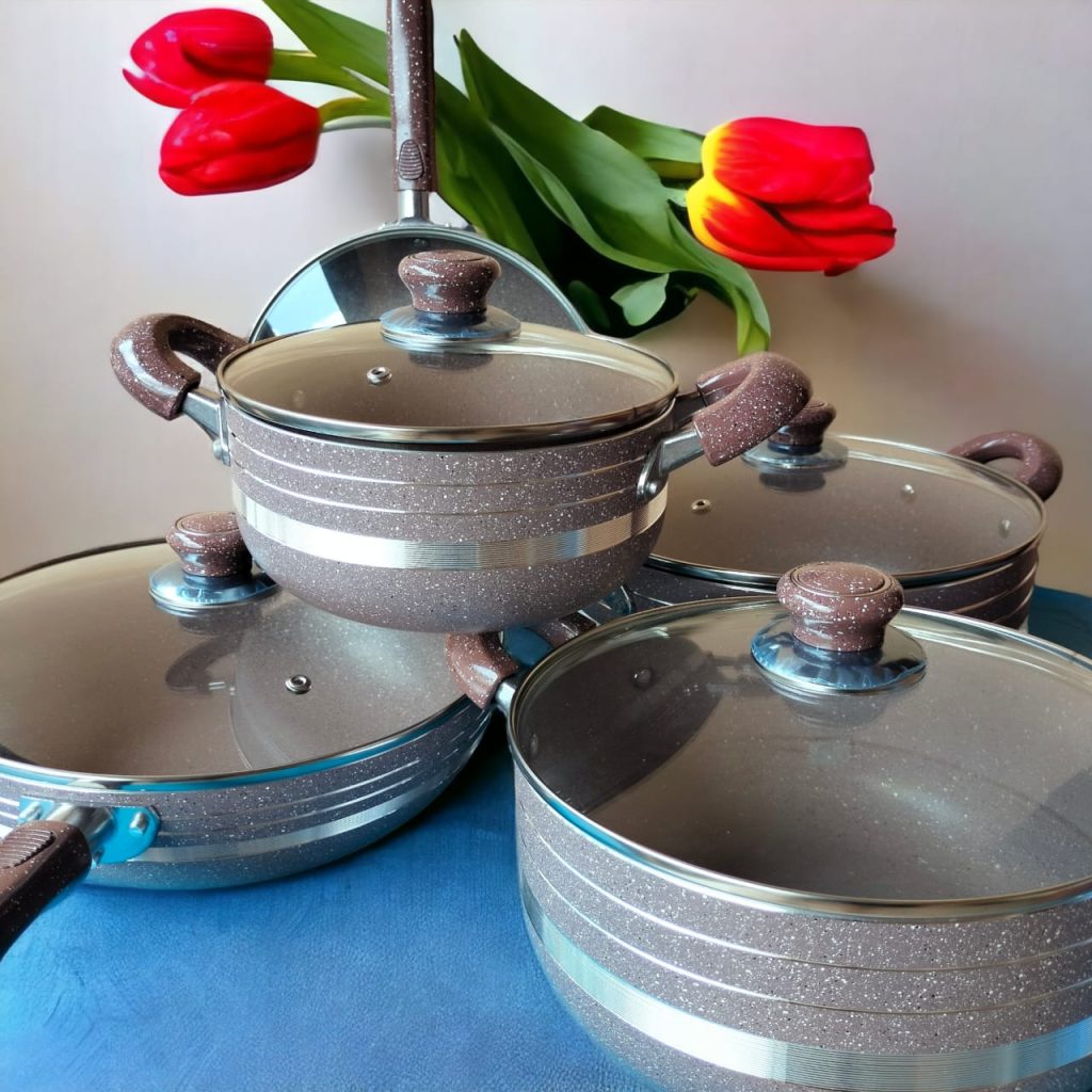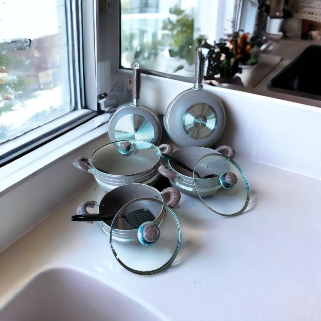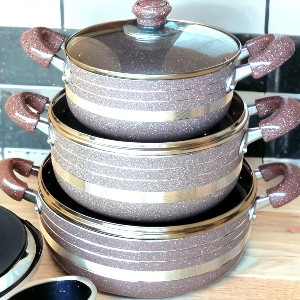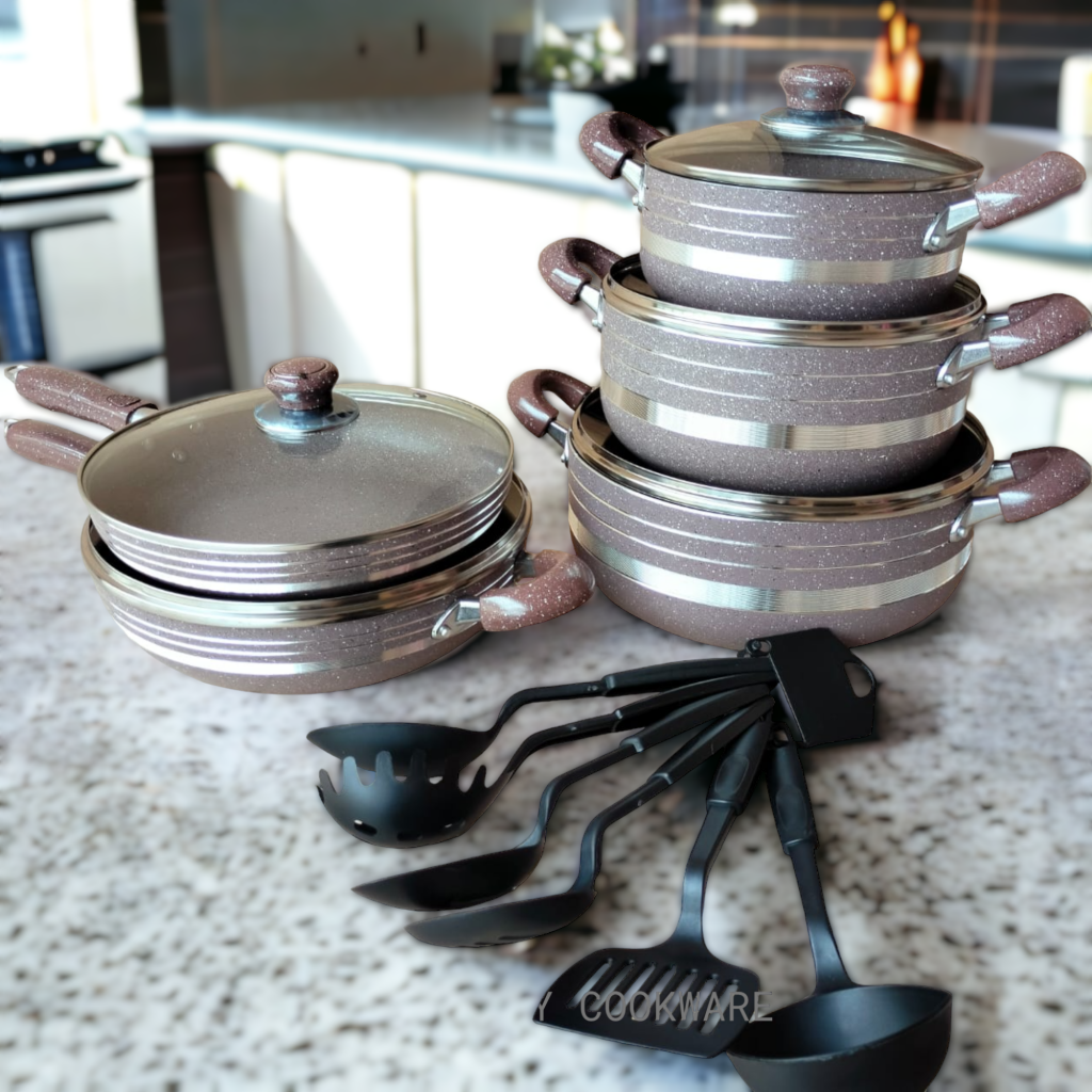The 16 Pieces In 1 Set of Non-Stick Cookware Comes in Different sizes to Accommodate all your Cooking needs.