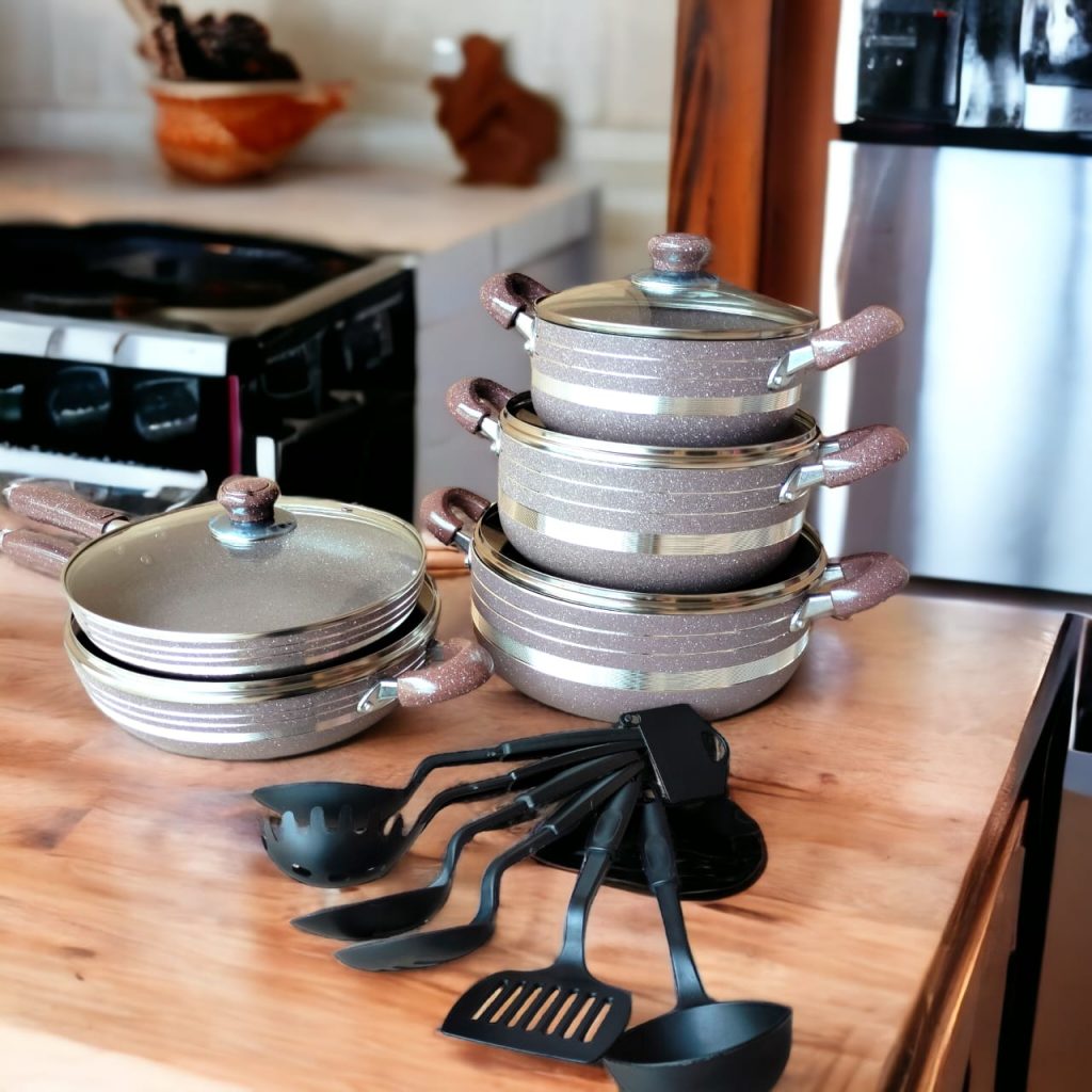 UPGRADE YOUR KITCHEN WITH THIS LUXURY 16 IN 1 SET NONSTICK COOKWARE.